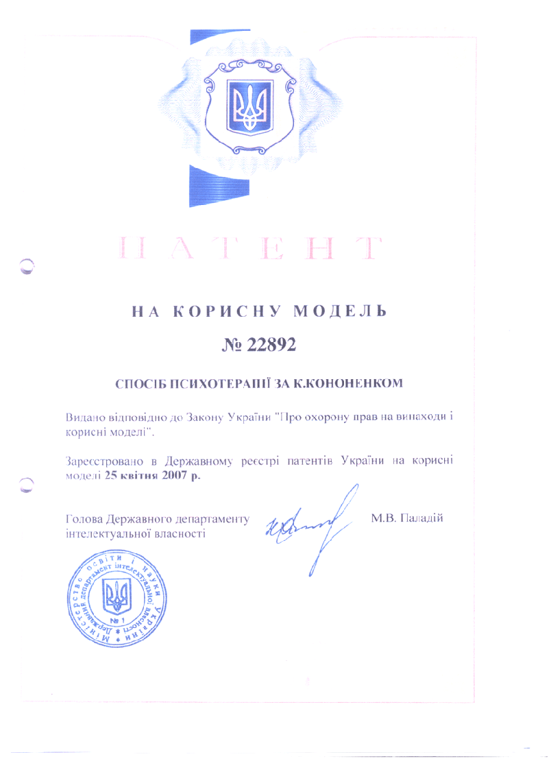 Это наука, изучающая необычные явления человеческой психики (паранормальные явления); область исследования, изучающая способы приема и передачи информации без использования обычных органов чувств, а также воздействие человека на физические объекты и явления без посредства мышечных усилий. Специалисты Института парапсихологии "Нова Генерація" работают по методу Константина Кононенко (Патент на корисну модель №22892. Видано відповідно до закону України "Про охорону прав на винаходи і корисні моделі". Зареєстровано в державному реєстрі патентів України на корисні моделі 25 квітня 2007 р.). Научный инструментарий, используемый в процессе работы, защищен 12-ю Патентами и Свидетельствами на авторское право. Суть метода академика Константина Кононенко заключается в следующем: Вокруг тела человека существует невидимая информационная оболочка. И если эта оболочка прорывается по причине аварии, хирургической операции, драки, нанесения порчи, сглаза, проклятий, и других причин, то у человека появляются болезни и разные жизненные проблемы. Стоит только "зашить" эти информационные дыры - и вы перестанете болеть, пропадет тяга к спиртному, никотину и другим зависимостям, пройдут неудачи, прекратятся ссоры, вернется любимый человек, наладится бизнес, преодолеете одиночество, возобновится мужская сила и женская привлекательность, наладится хозяйство. Создан новый научный продукт Института парапсихологии "Нова Генерація":