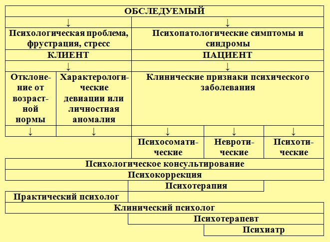 Таким образом, профессиональной компетенцией клинического психолога в сфере оказания психологической помощи является психическая патология, исключающая психотические расстройства, и психологические проблемы как соматически здорового, так и больного человека. При этом клинический психолог вправе применять все виды психологической помощи (консультирование, коррекцию и психотерапию). Спосіб психотерапії за К.Кононенком | |||